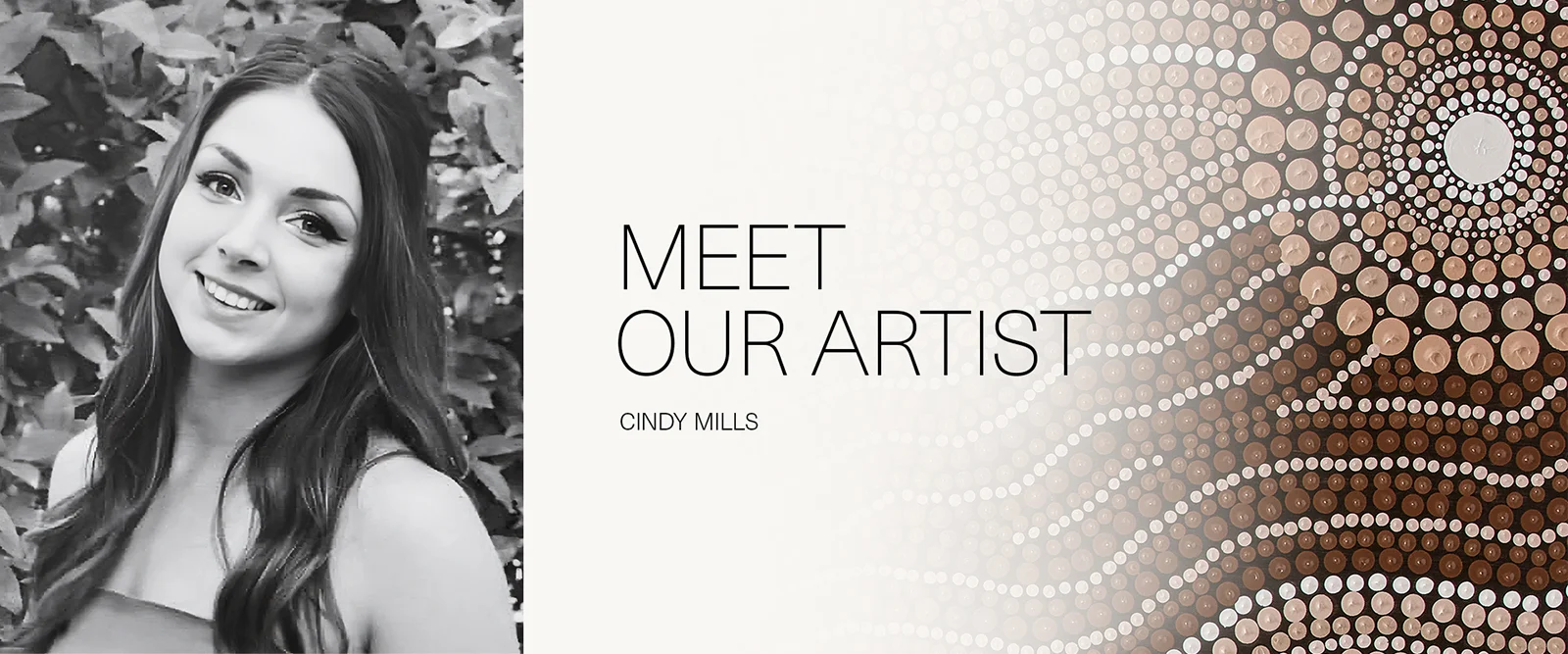 Dotted patterns ripple across the surface, guiding the eye through the composition while circular motifs create points of focus along the journey.