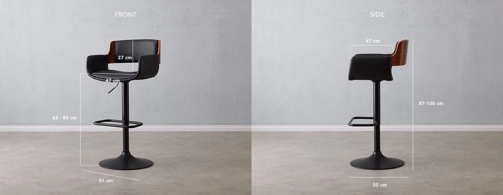 Rest your legs comfortably during long conversations with the metal footrest thoughtfully incorporated into the design. This footrest provides added support and allows you to maintain a relaxed and ergonomic posture while seated. The Zadar Bar Stool presents an excellent combination of black and warm brown, creating a visually striking aesthetic that adds a touch of sophistication to your home bar setup. The harmonious interplay of colours enhances the overall appeal of the stool, making it a captivating focal point in your space.