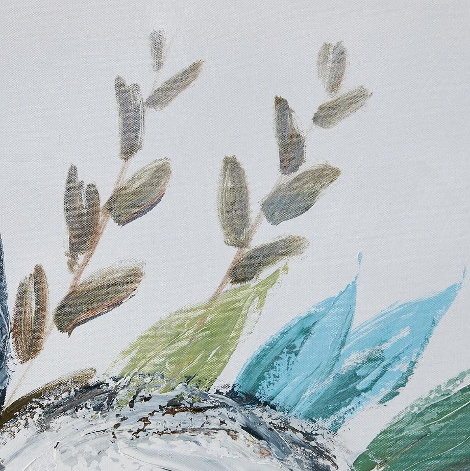 The Blue Rose Painting is a serene composition that bathes the room in a tapestry of calming shades, encapsulated in a surreal and abstract rendition of nature's splendor. Hues of crisp white meld with the deepest blues and lush greens to depict a dream-like bouquet of roses, each petal seemingly unfurling on the stark purity of the white canvas.