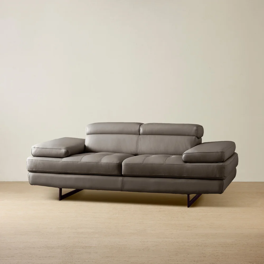 Lennox Warm Stone Grey Leather 2-Seater Sofa - Black Legs