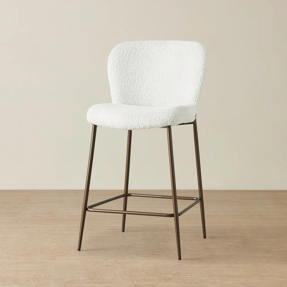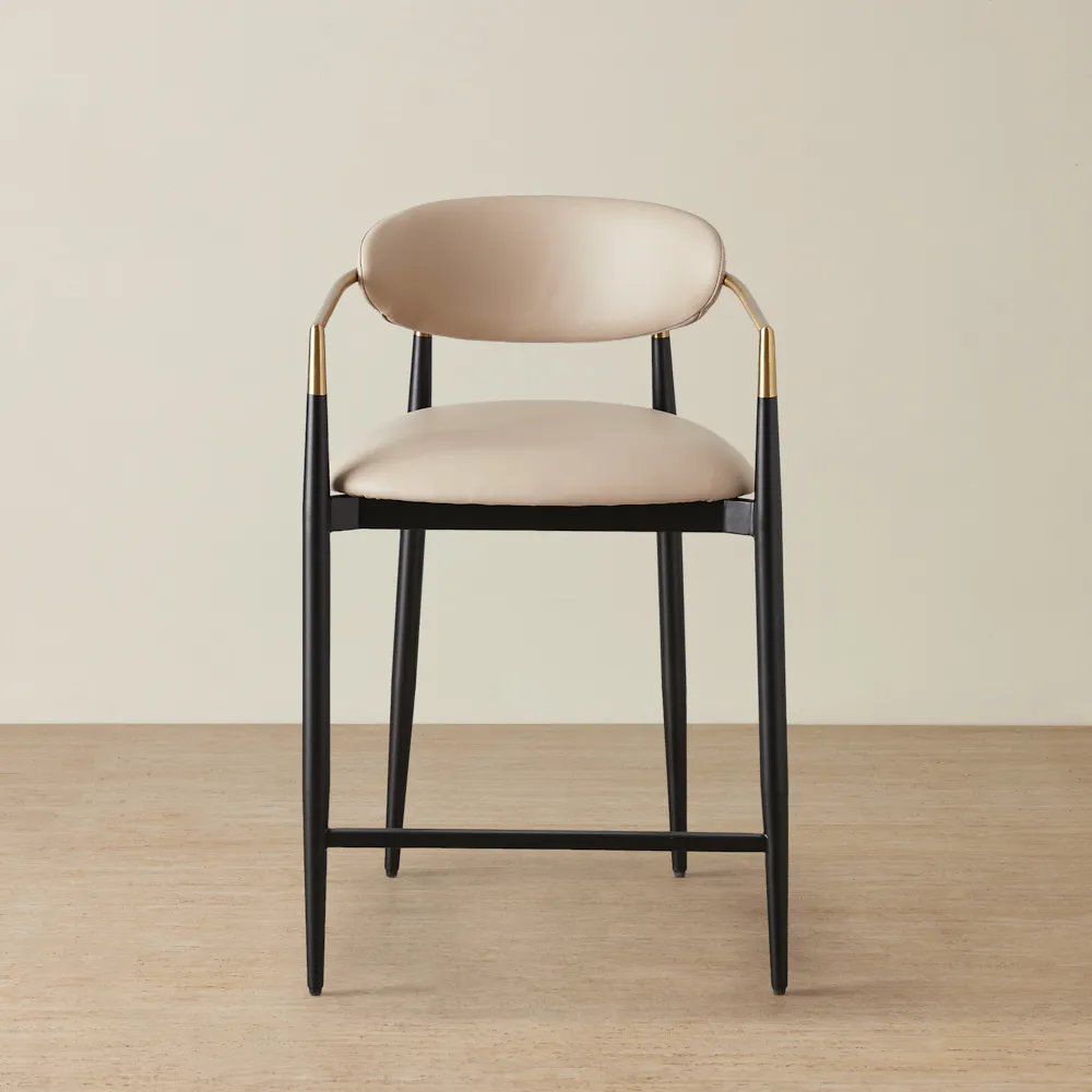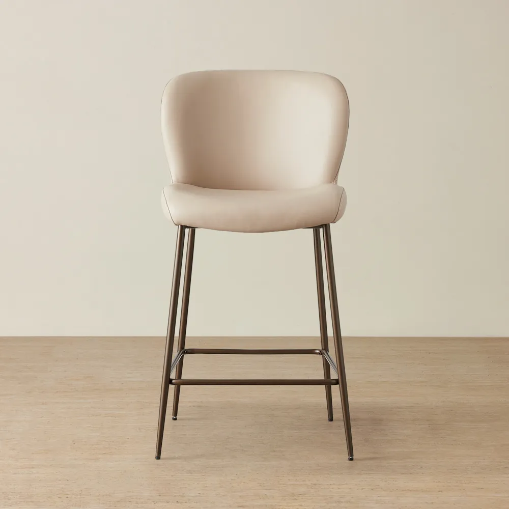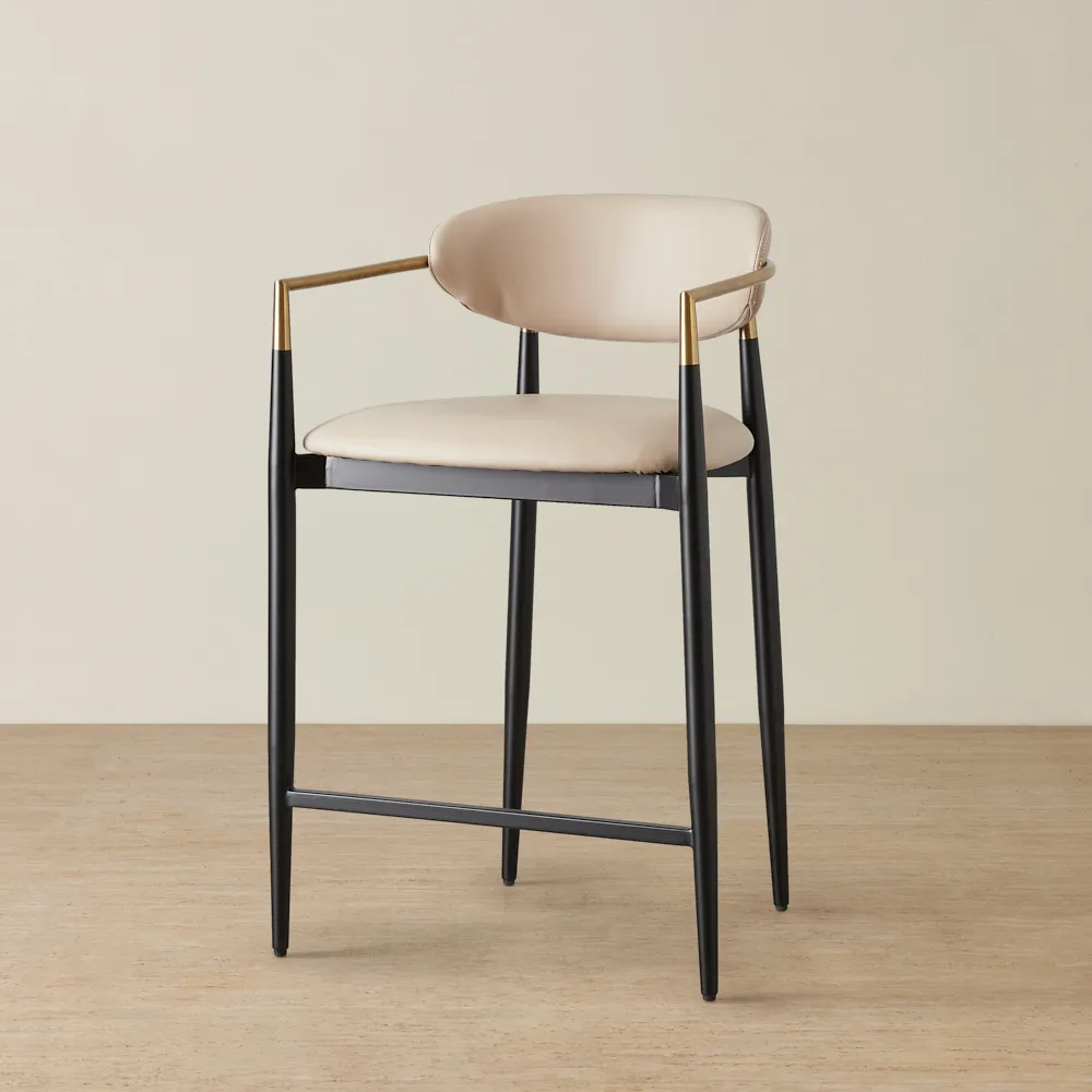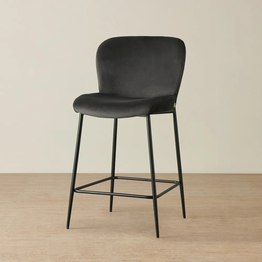 Keep it simple but stylish. Start with a focal point, like a bar cabinet or cart, then add statement bar stools for seating. Use warm lighting, a mix of glassware, and subtle bar décor like a tray or artwork to bring it all together.