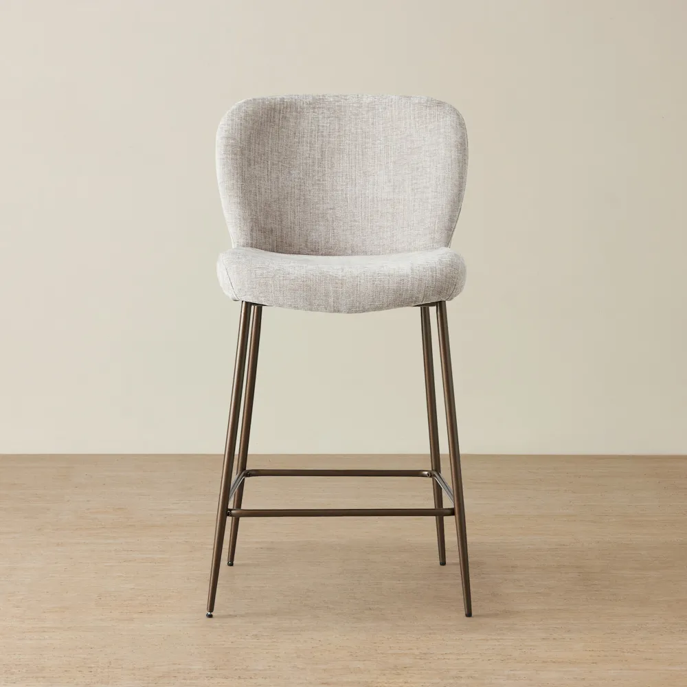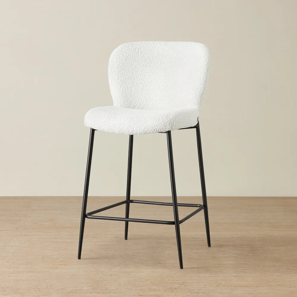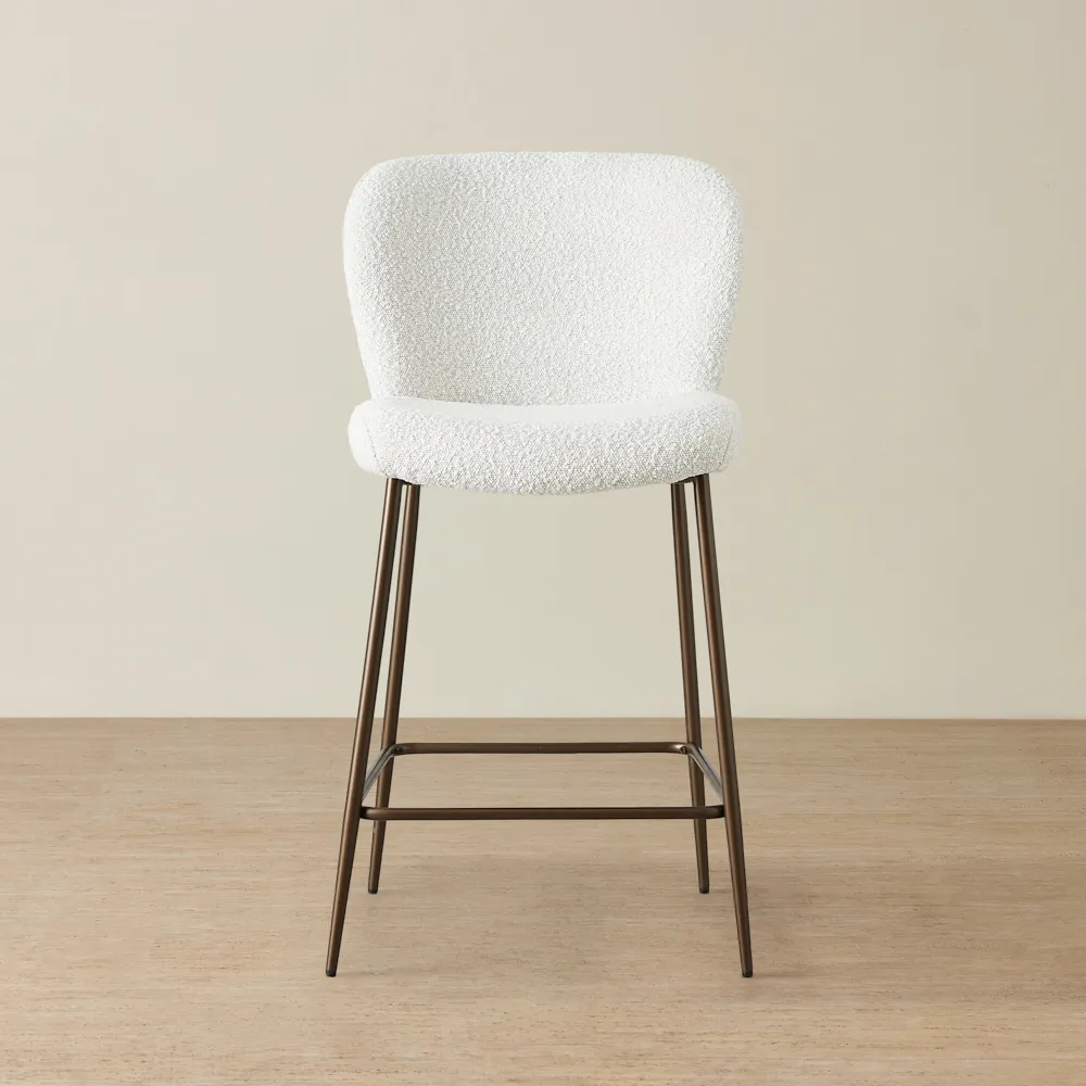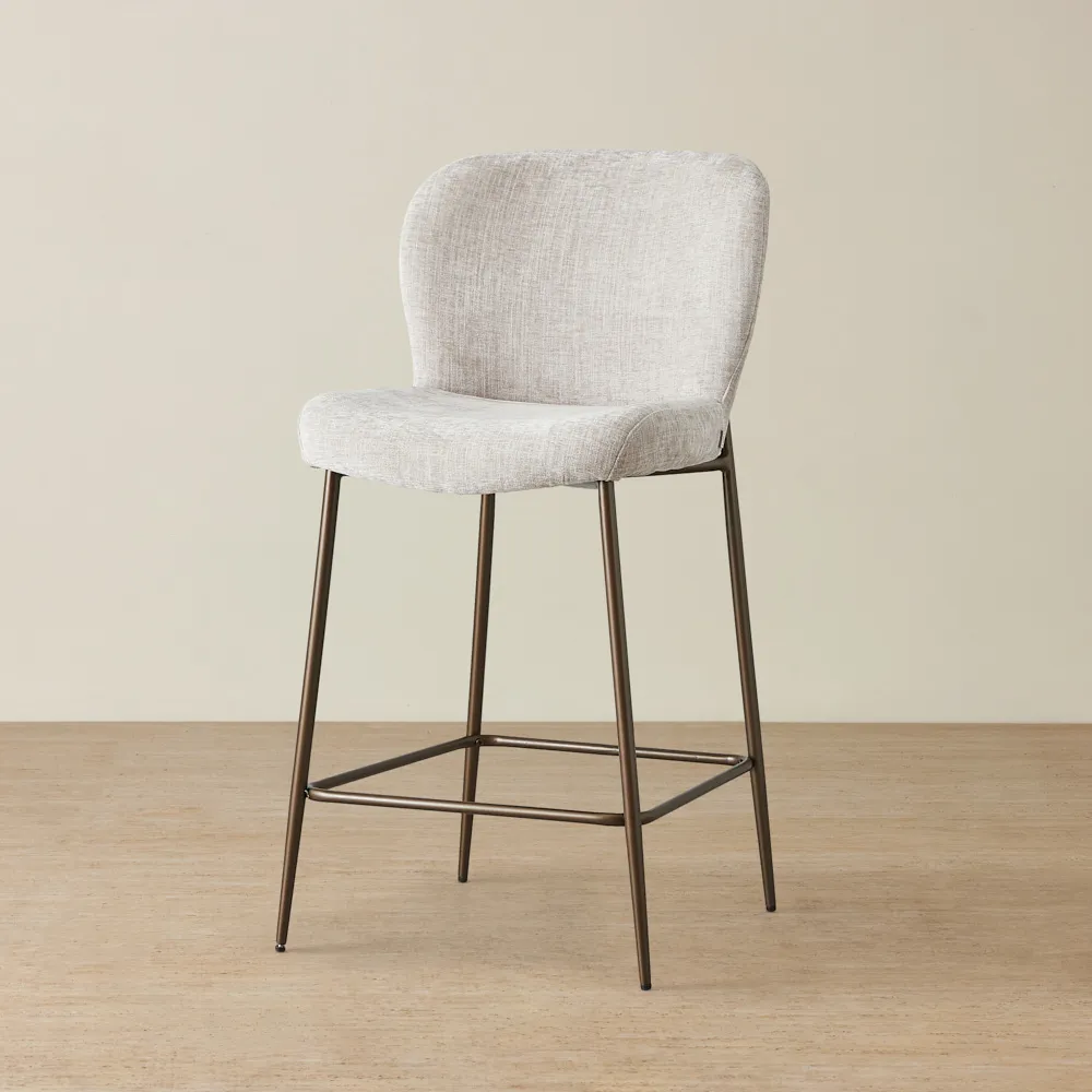 Keep it simple but stylish. Start with a focal point, like a bar cabinet or cart, then add statement bar stools for seating. Use warm lighting, a mix of glassware, and subtle bar décor like a tray or artwork to bring it all together.
