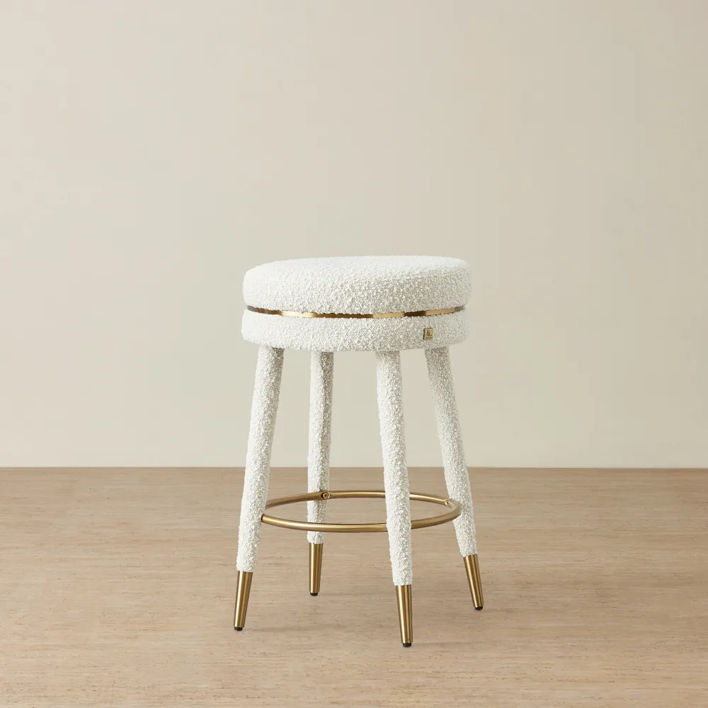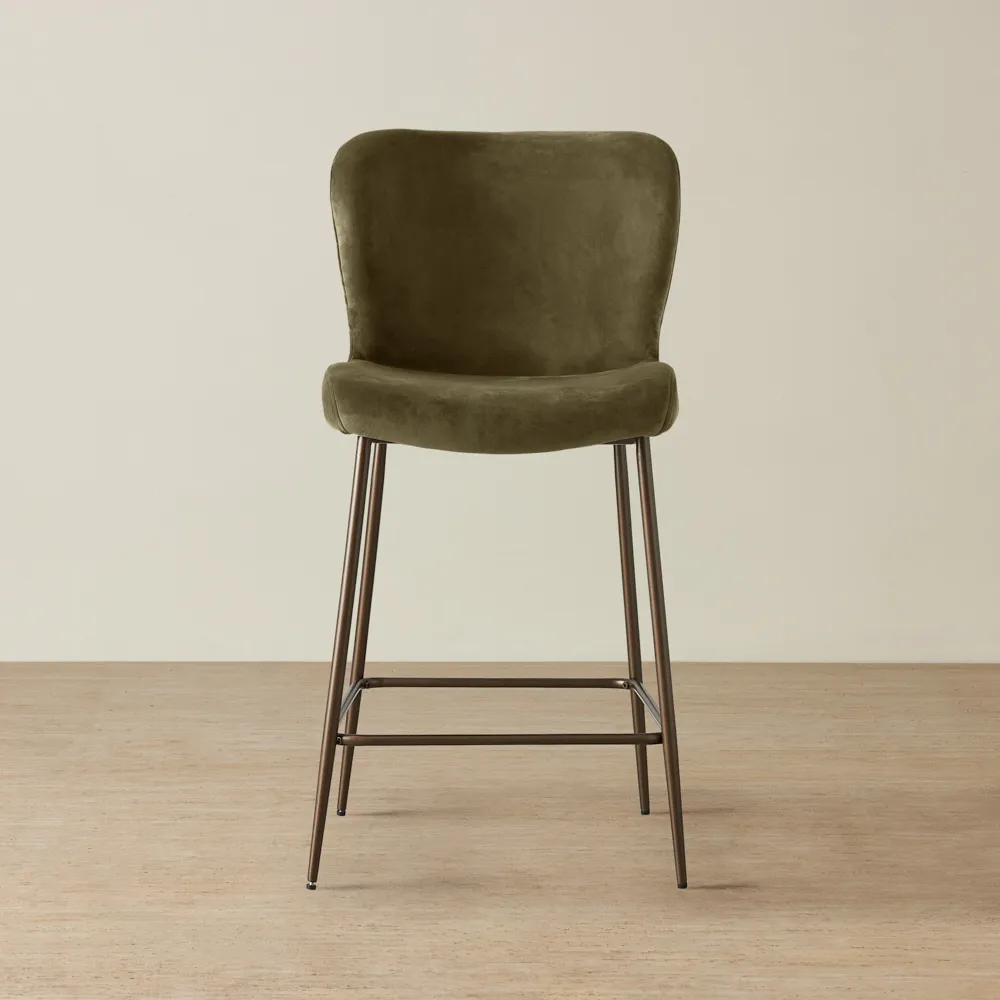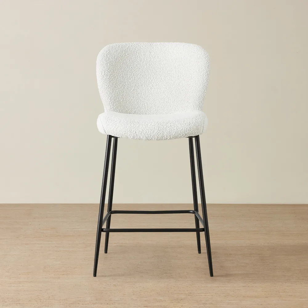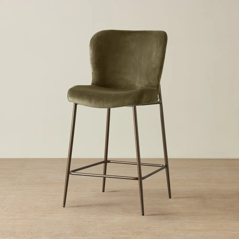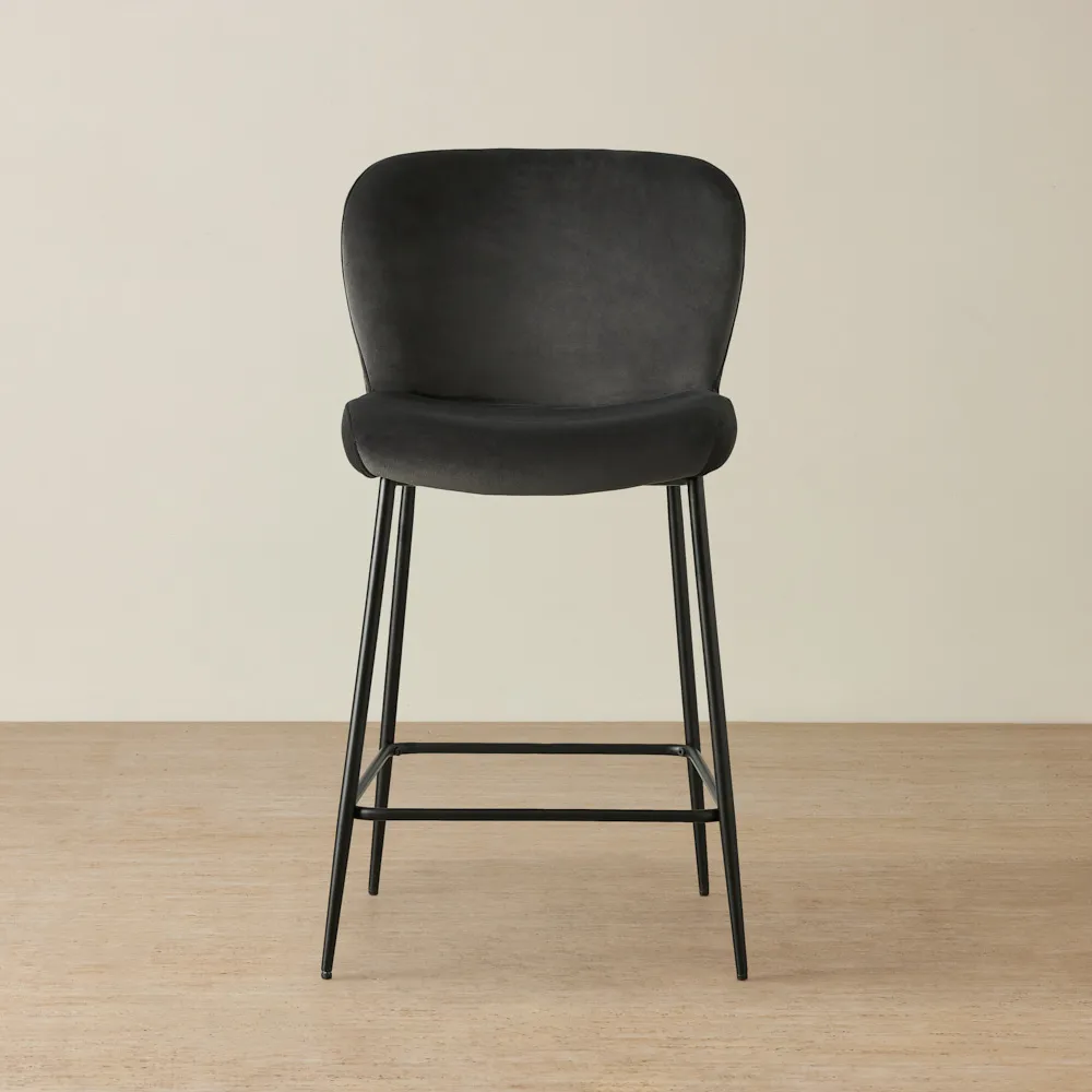 Keep it simple but stylish. Start with a focal point, like a bar cabinet or cart, then add statement bar stools for seating. Use warm lighting, a mix of glassware, and subtle bar décor like a tray or artwork to bring it all together.