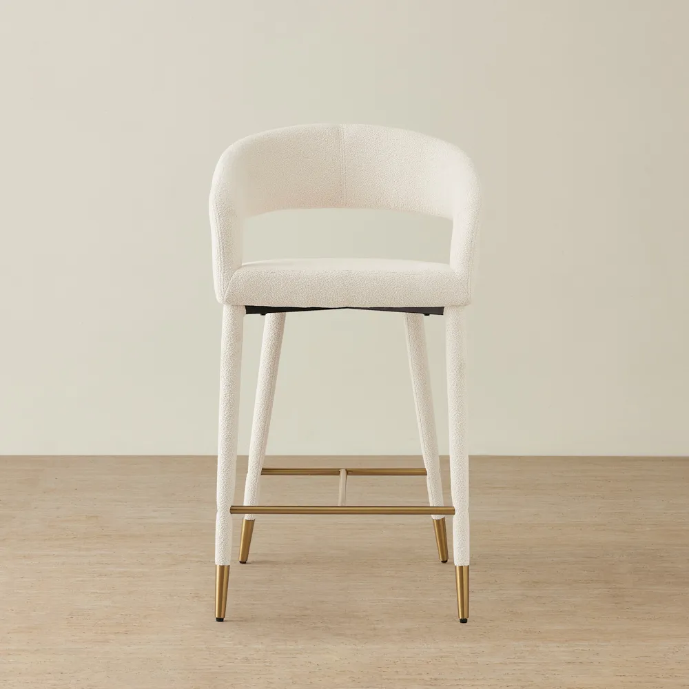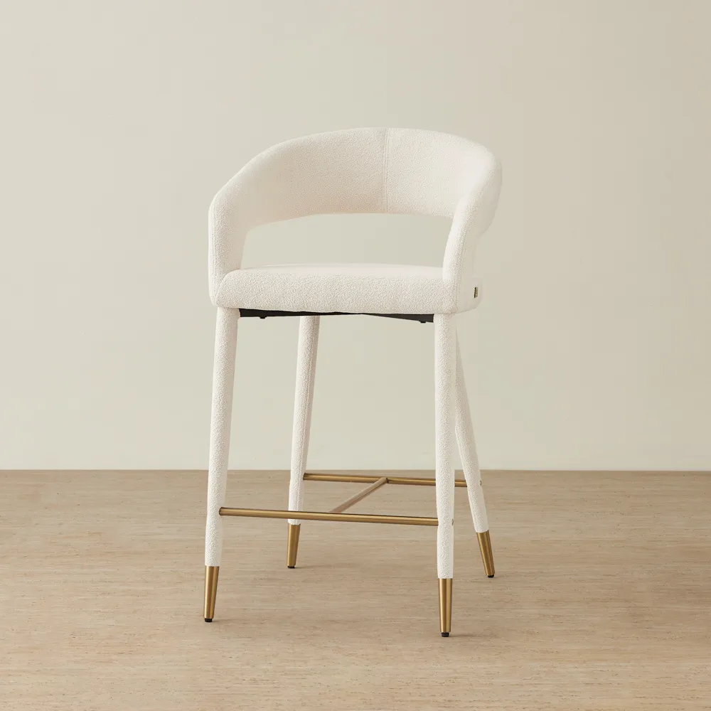 For a sleek, modern look, our vegan leather counter stools offer a refined touch with easy maintenance. If you prefer a softer, more inviting feel, velvet counter stools add a hint of glamour, while fabric counter stools provide timeless versatility. For a trendy, textured finish, bouclé counter stools bring warmth and depth to your space.