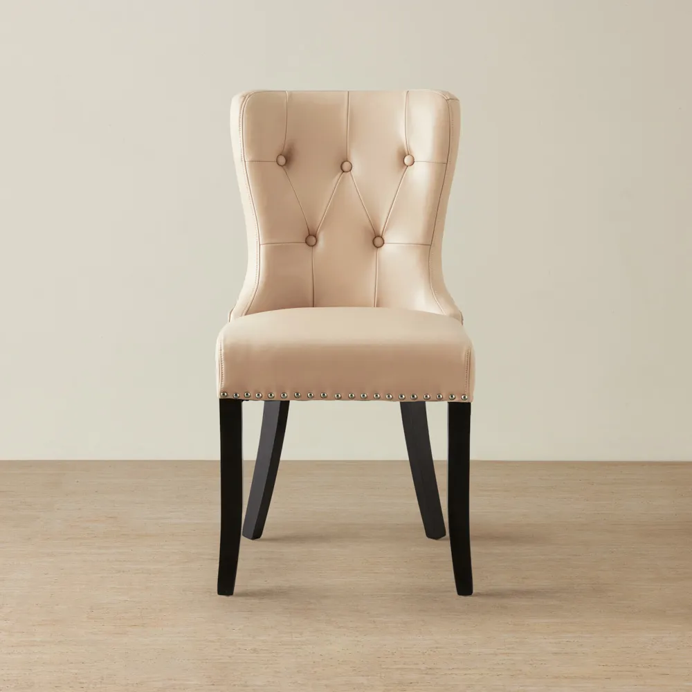 The Hailey sand beige vegan leather dining chairs stand out as the most popular and stylish side chair among its peers. Not only do they exude elegance, but they also provide a delightful experience for Wine and Dine enthusiasts. With a design that showcases simplicity and premium materials, these gorgeous dining chairs effortlessly radiate beauty.