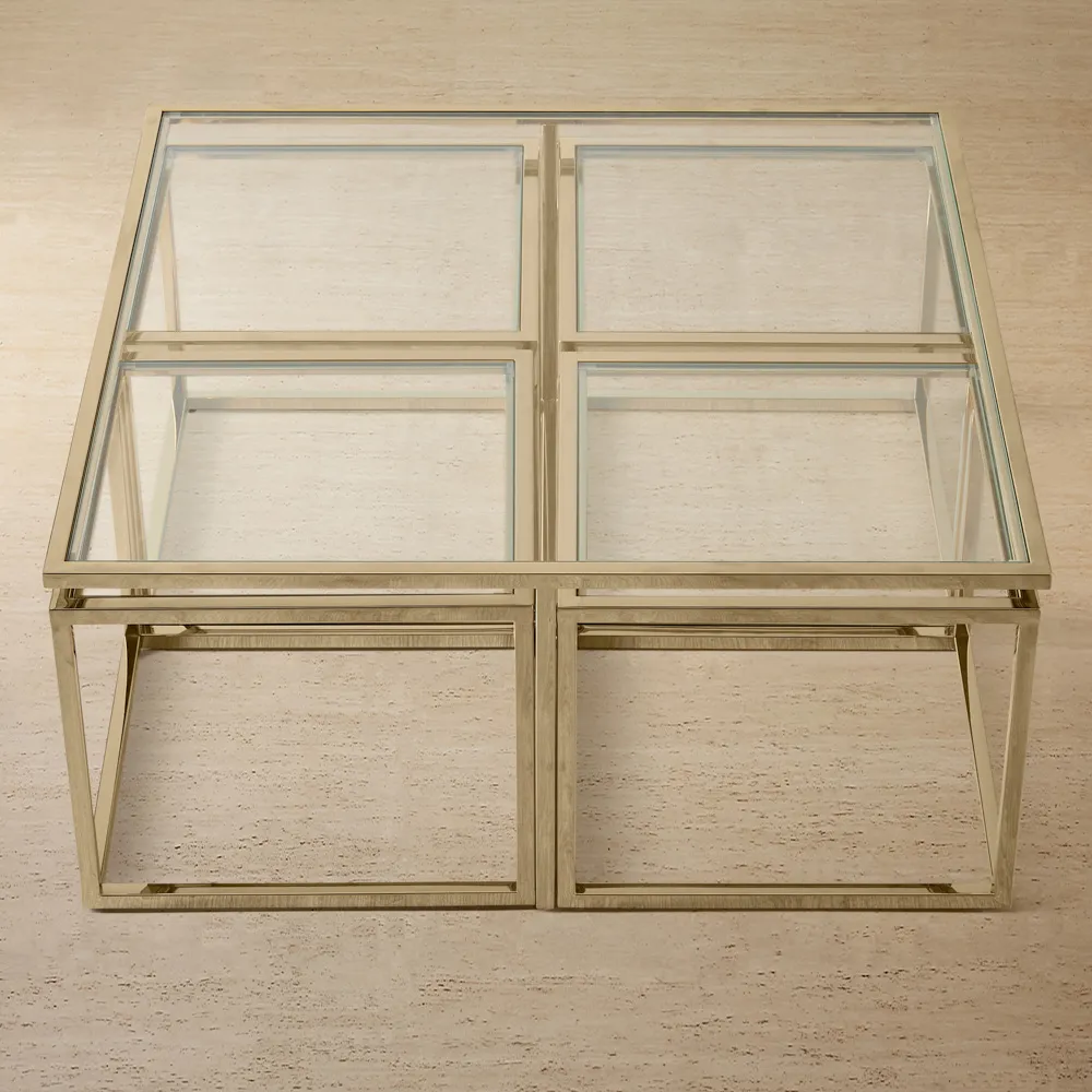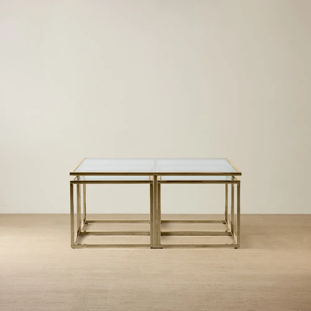 The Grazia Brushed Gold Stainless Steel Square Coffee Table is luxury personified, with its gleaming colours and stand-out art-deco-inspired design. The Grazia's striking frame is made from high-quality stainless steel. Sections of this frame are boldly arranged to accentuate its impressively defined borders. A luxurious glow emanates from its glorious frame, bringing an aesthetic of opulence to your living room.
