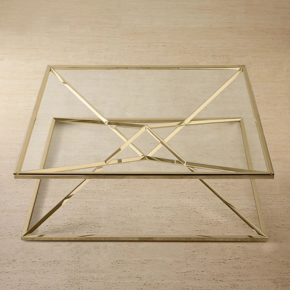The Grazia Brushed Gold Stainless Steel Square Coffee Table is luxury personified, with its gleaming colours and stand-out art-deco-inspired design. The Grazia's striking frame is made from high-quality stainless steel. Sections of this frame are boldly arranged to accentuate its impressively defined borders. A luxurious glow emanates from its glorious frame, bringing an aesthetic of opulence to your living room.