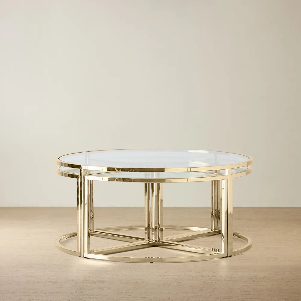 Our coffee table collection features everything from multi-tiered masterpieces to modern rustic wonders and geometrical works of art. Inspired by diverse stylistic eras and made with premium materials, including luxurious marble, each table is designed to elevate your living room. Explore our wide range of coffee tables to find the perfect match for your room feels and living space.