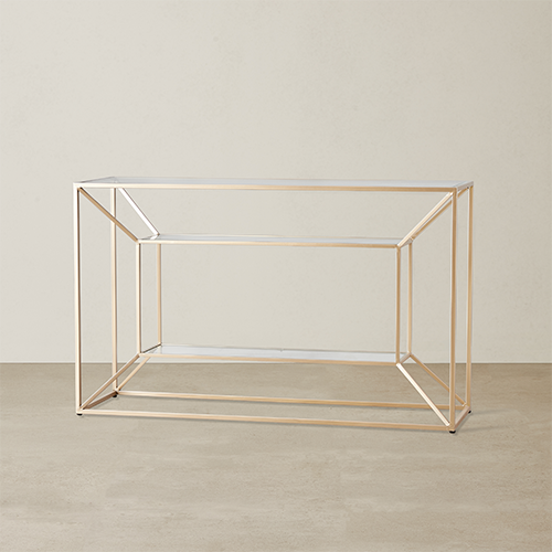 Explore our collection of glass console tables, each exuding timeless elegance and captivating charm. The geometric luxury and intricate designs of our tables promise to add a touch of sophistication to any room. With illusionary borders and artistic elements, our marble console tables create a magical ambiance. Our diverse console table collection includes styles that elevate your space, seamlessly blending sophistication and modernity to transform your decor.