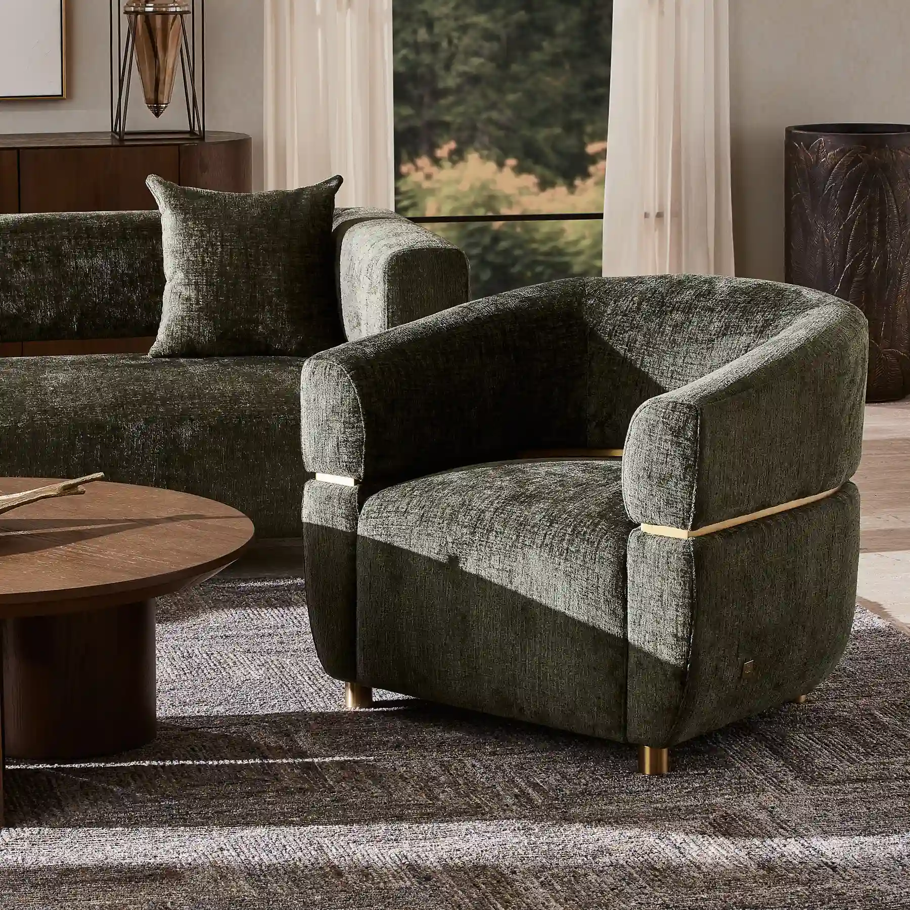 Malta II Green Chenille Fabric Occasional Chair