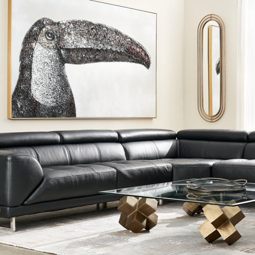 Anver Black Leather 4-Seater Sofa