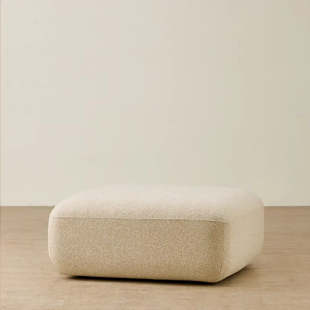 The Callie Cream Boucle Square Ottoman offers an undeniably sleek aesthetic to your home with its modern design and sophisticated colours. Its beautiful square frame is crafted with beautiful corners and a gorgeous silhouette that echoes its modernity. High-quality Boucle Fabric drapes the Callie in elegance, along with its soft and knobby texture that adds to its inviting look.