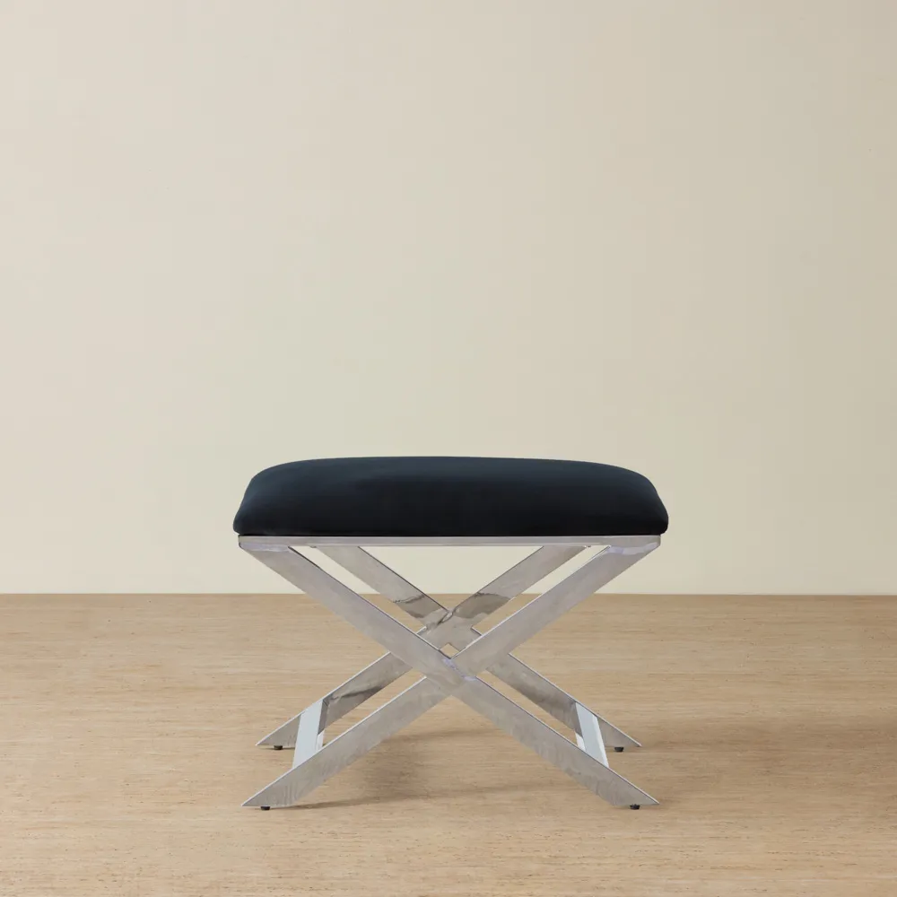 Elle Black Ottoman - Polished Stainless Steel Legs