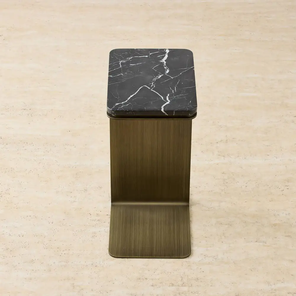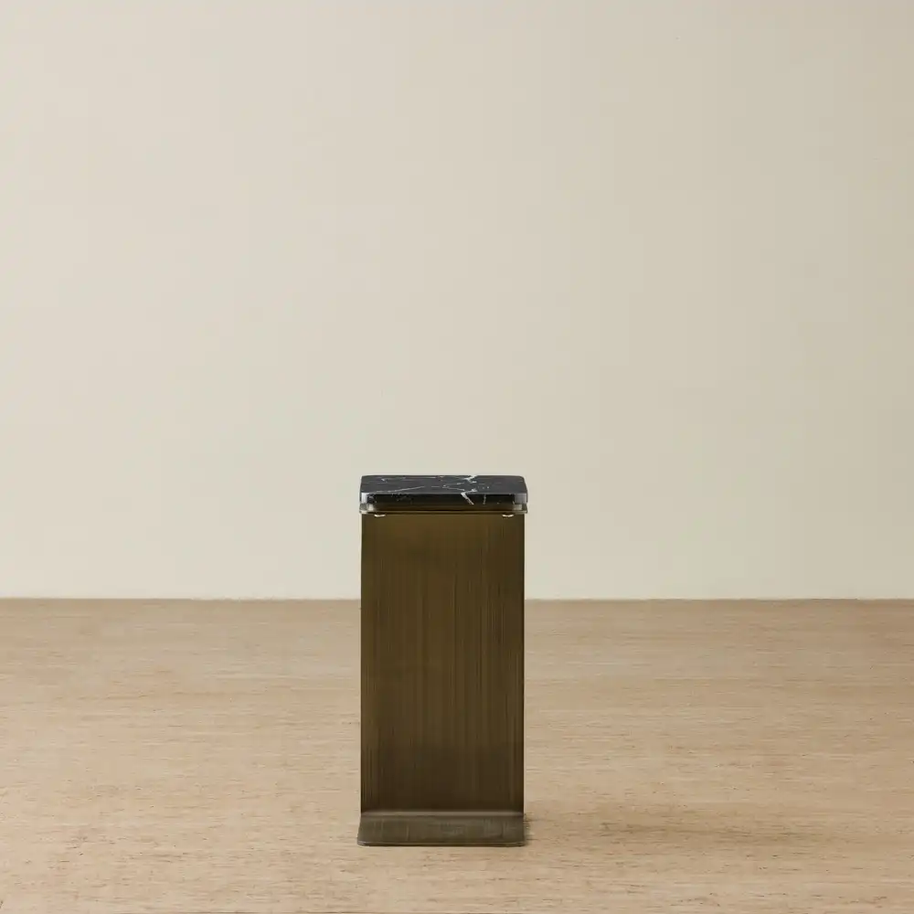 Discover the elegance and functionality beneath the surface with our exceptional rectangular side tables, each crafted to elevate your living space with their unique attributes. The Monolith Natural Cream Travertine Side Table stands as a testament to timeless design, blending modern aesthetics with the natural beauty of cream travertine. Its durable, monolithic form is accentuated by subtle color variations and patterns within the stone, ranging from soft ivories to gentle beiges, encased in a sleek brass trim.