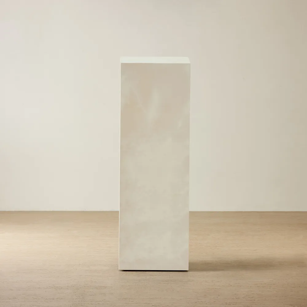Discover the elegance and functionality beneath the surface with our exceptional rectangular side tables, each crafted to elevate your living space with their unique attributes. The Monolith Natural Cream Travertine Side Table stands as a testament to timeless design, blending modern aesthetics with the natural beauty of cream travertine. Its durable, monolithic form is accentuated by subtle color variations and patterns within the stone, ranging from soft ivories to gentle beiges, encased in a sleek brass trim.