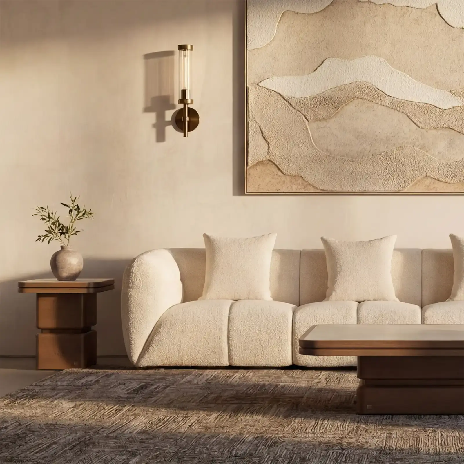 San Pierre Walnut Veneer Side Table with Travertine Finish Sintered Stone Top