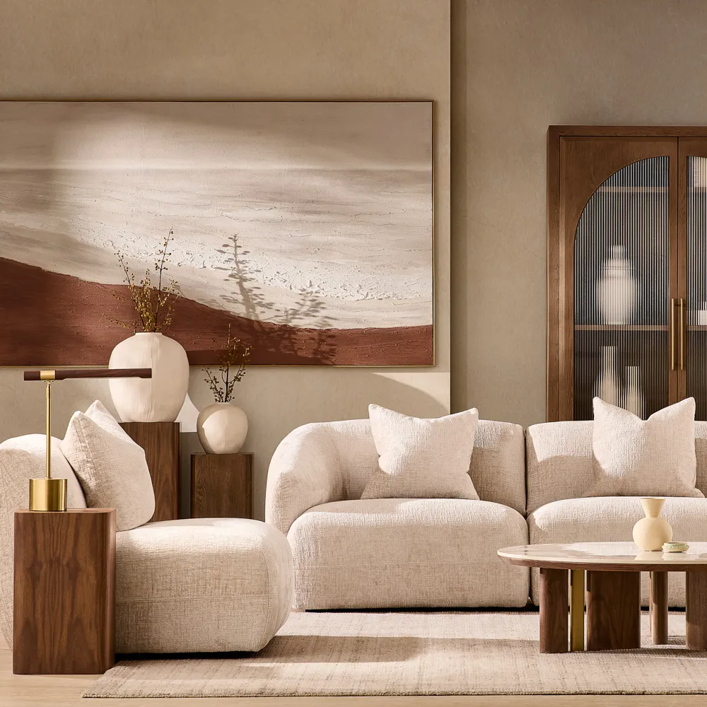 Portobello II Toffee Brown Ash Veneer Side Table - Pandora Brown Sintered Stone Top
