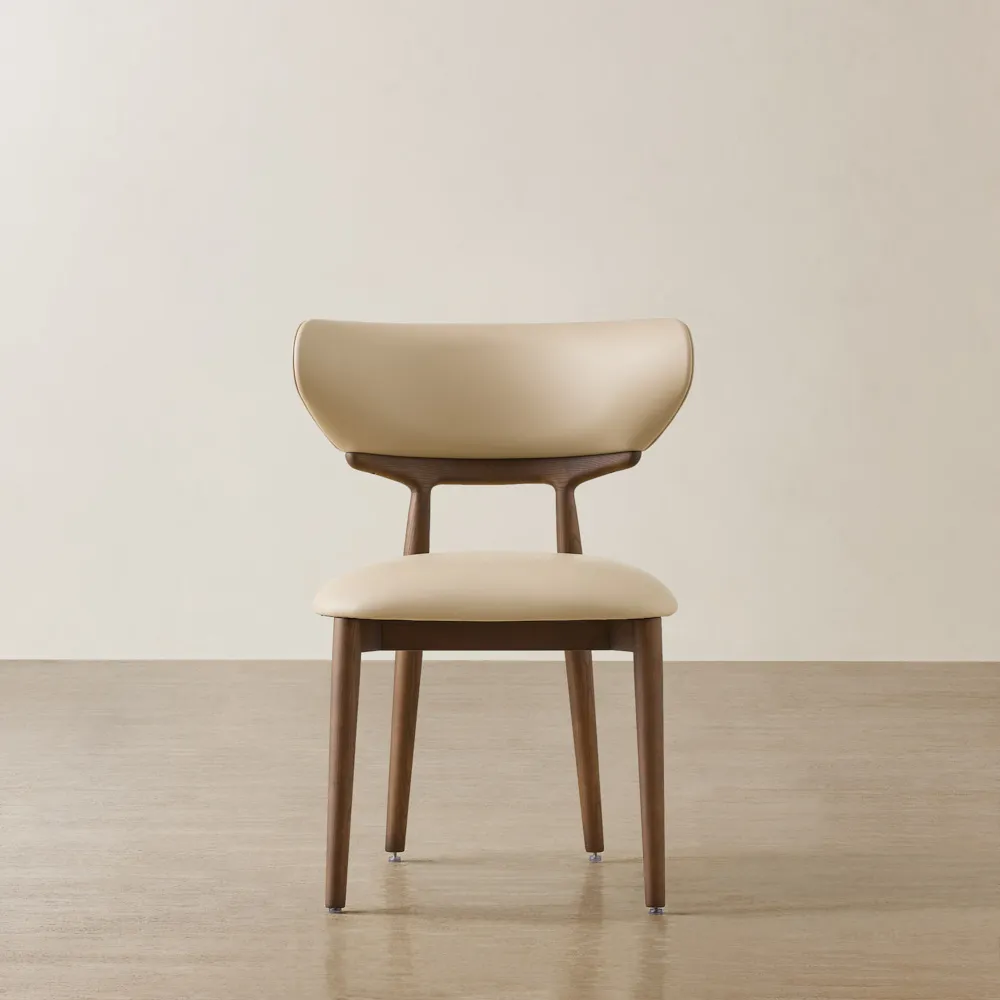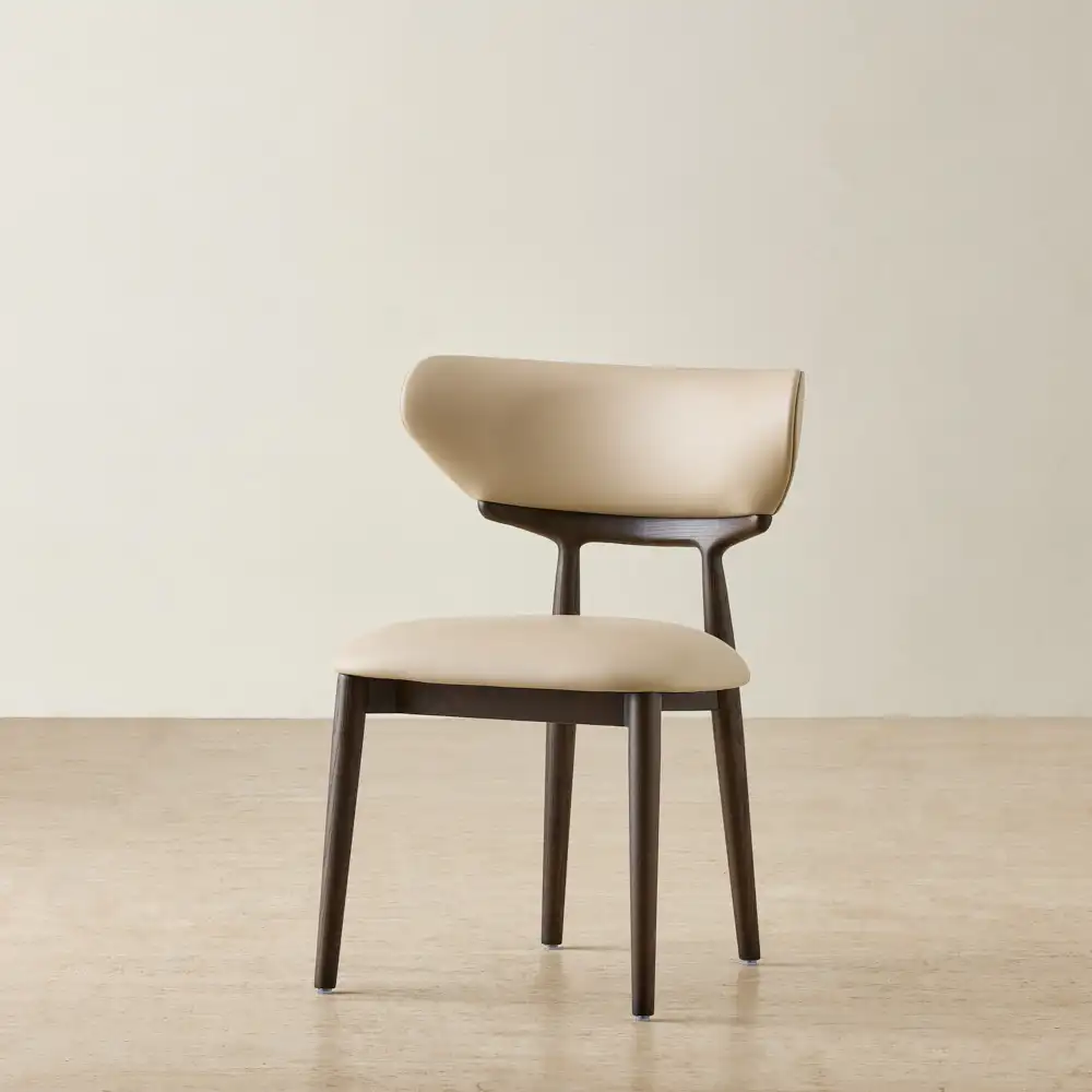 Aretha Sand Beige Vegan Leather Dining Chair - Ebony Brown Ash Legs