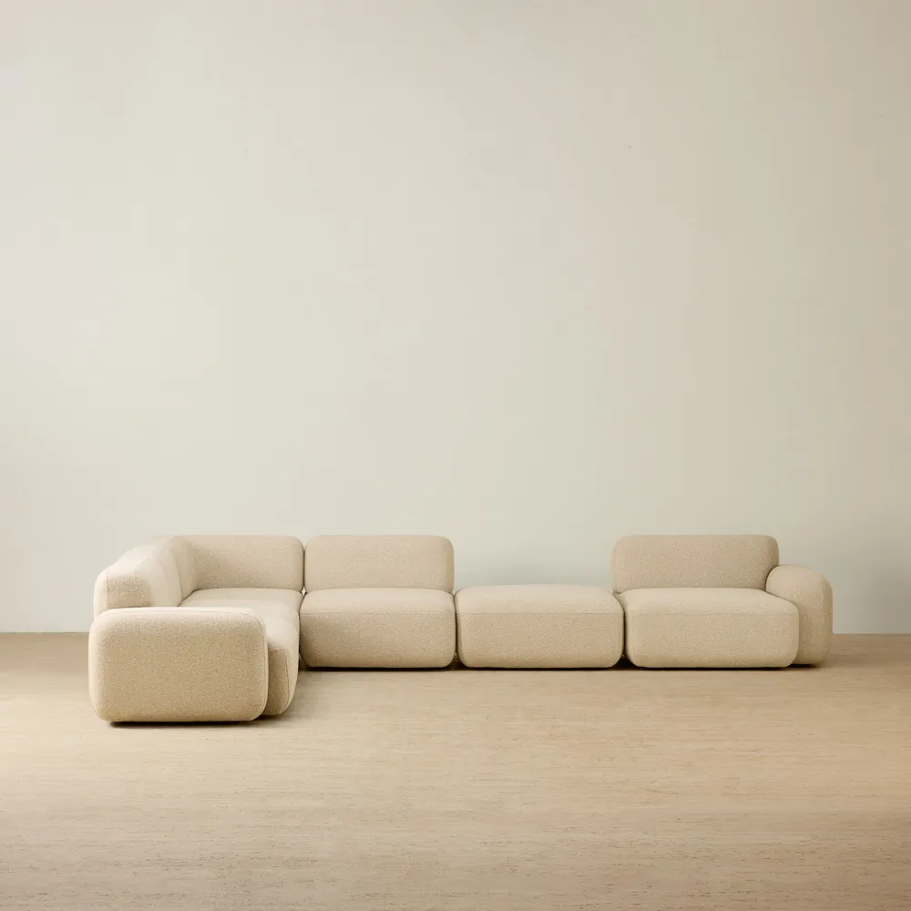 The stone white fabric enhances its minimalist appeal, offering a timeless backdrop for your living area. With a versatile modular design, it combines both style and comfort, adapting to your space with ease.