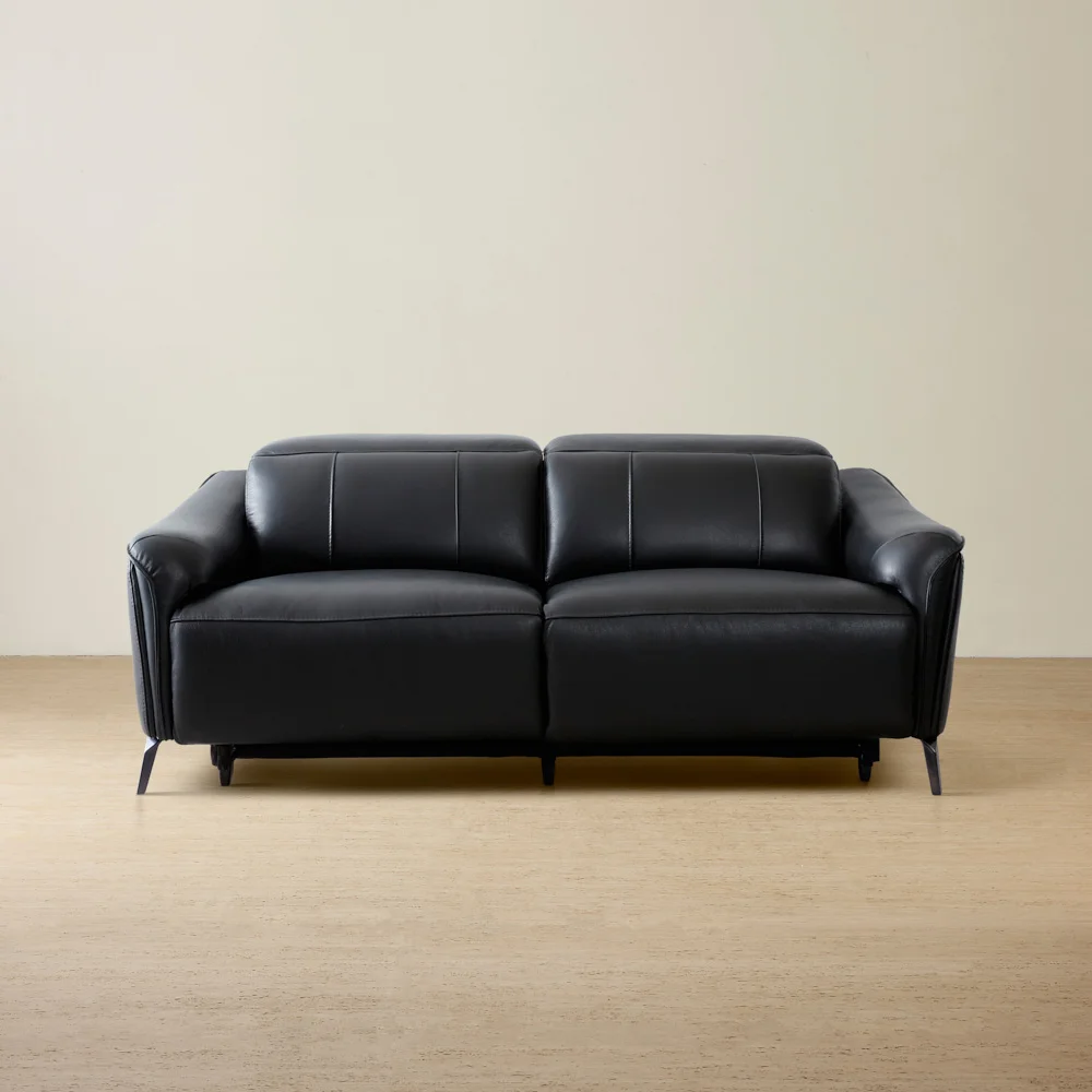 Rest easy with the modern luxury of the Carolina 3-Seater Electric Recliner. Its black leather upholstery adds a touch of distinction, while high-density foam ensures comfort for relaxation.