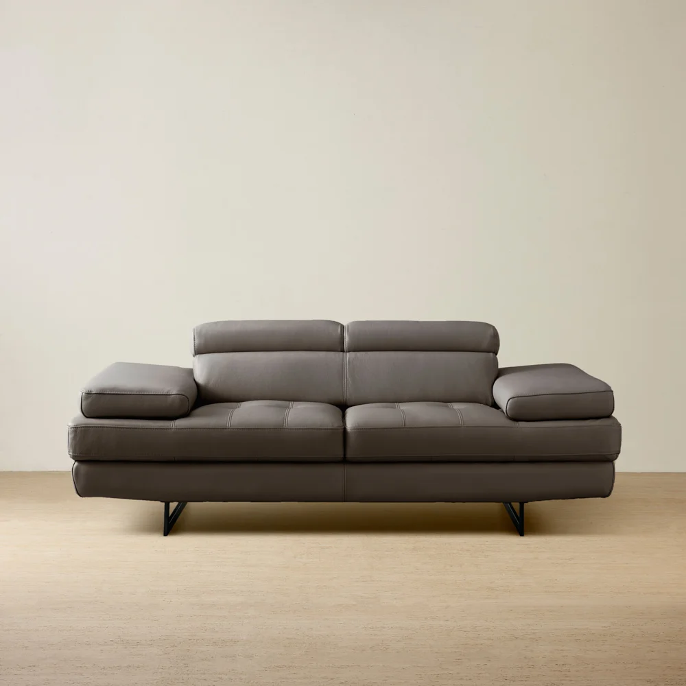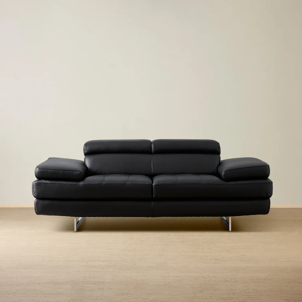 Love the sofa, it is a unique navy blue. It's a great sofa for not blocking the view, especially from other positions/ perspectives in the room. Being able to raise the headrest and armrest to various positions (without the heavy motorised components) makes for comfortable options when sitting for longer periods, and it is also easier to move. All this, plus having clear, unobstructed views, makes this sofa a winner. I know I bought two!