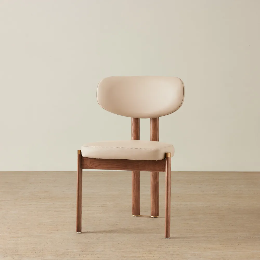 The toffee brown ash legs bring warmth and balance to the look, finished with understated brass caps. Built for both comfort and style, it fits seamlessly into modern dining spaces.