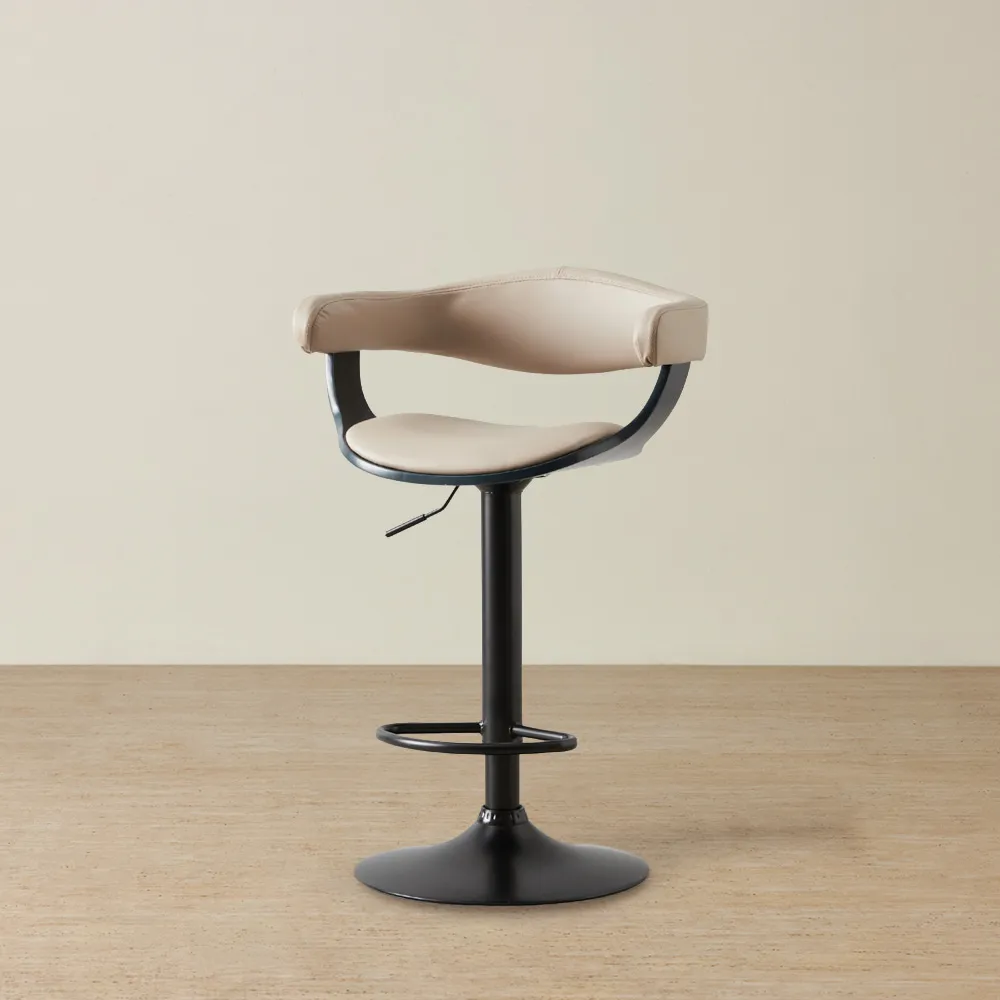The Cres Black Vegan Leather Bar Stool combines unmatched utility, comfort, and style, transforming your home bar into a space of decadence for you and your friends. Experience comfort as you take a seat on this exceptionally designed bar stool, filled with dense foam and upholstered with a remarkably stylish offering of black leather. Enjoy the stylized footrest and take advantage of the gas lift mechanism, easily adjusted with the lever conveniently located just below the seat. Find your optimal level of comfort with its adjustable height features.