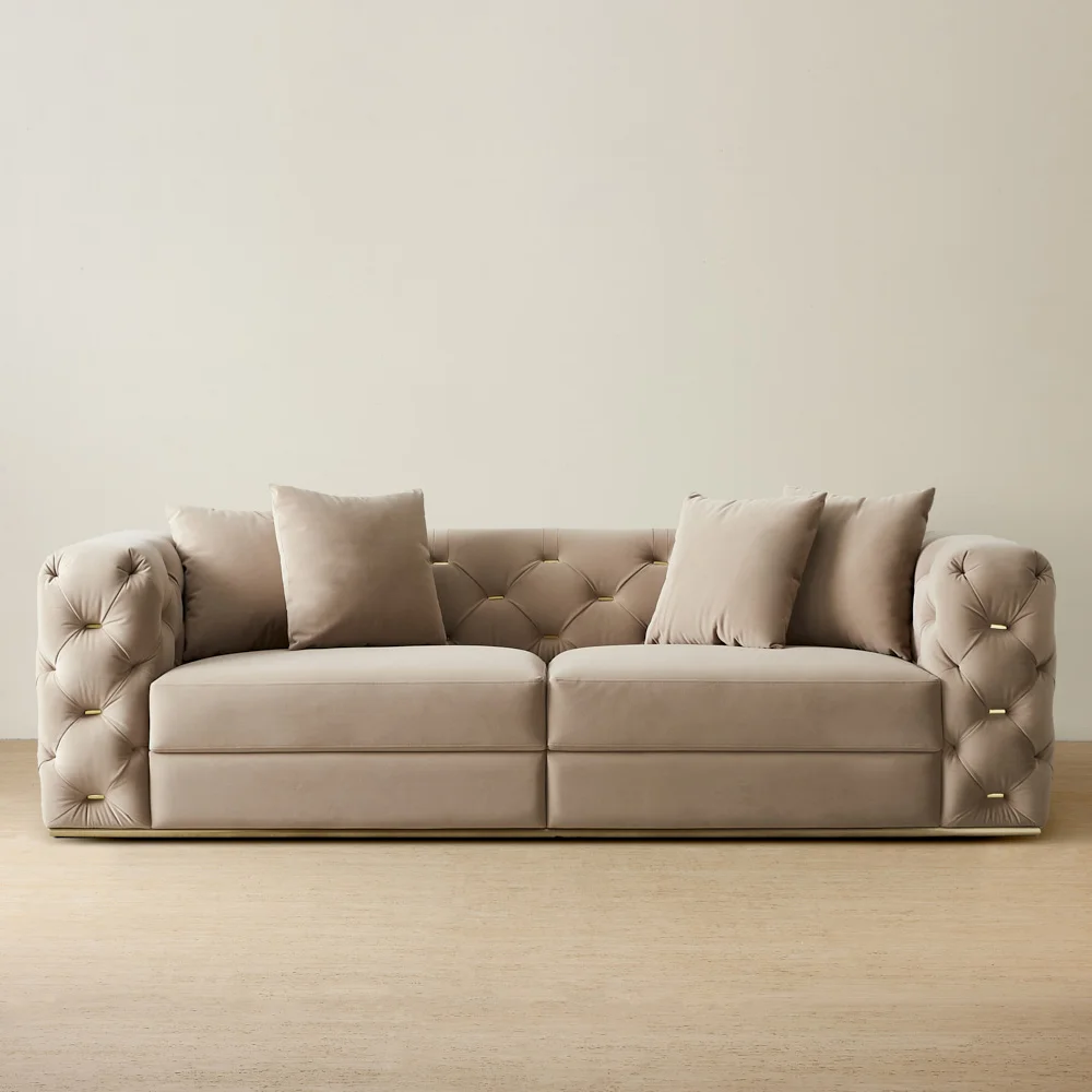 Crown Beige Velvet 3-Seater Sofa