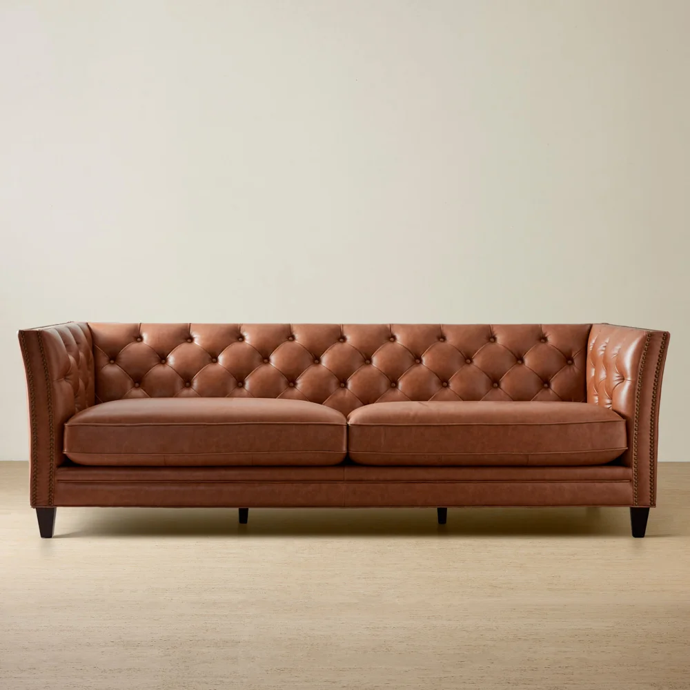 Portia Vintage Tan Leather 4-Seater Sofa